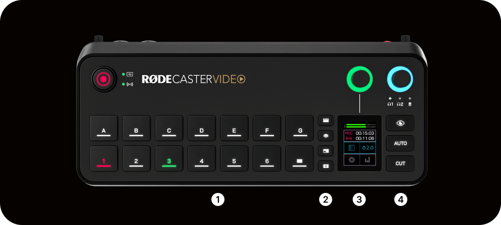 - สามารถสลับเปลี่ยนระหว่างแหล่งวิดีโอได้สูงสุด 6 แหล่ง (source) และ 7 ซีน (scenes) ที่ปรับแต่งได้อย่างเต็มที่ เพียงแค่กดปุ่มเดียว