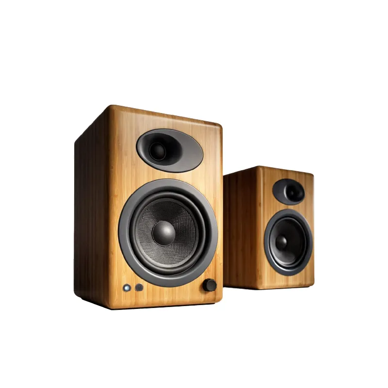 Clear, full and powerful audio that fills any room. The A5+ Powered Speakers are constructed with custom Audioengine components: Kevlar woofers, silk tweeters, and built-in power amps wrapped in precision-tuned and hand-crafted cabinets.
