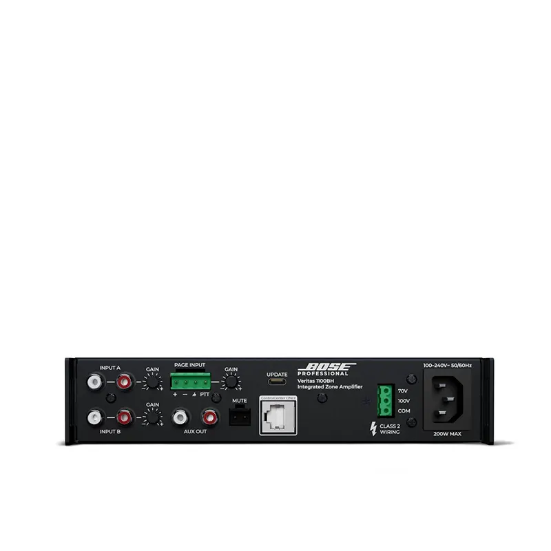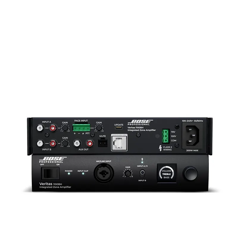 มิกเซอร์แอมป์ BOSE VERITAS 1100BH 70V/100V 100 วัตต์ รองรับการเชื่อมต่อทั้ง Bluetooth และ RCA โดยไม่ต้องตัดต่อสายไฟ มี EQ Preset ให้เลือกถึง 30 แบบ จากแบรนด์ BOSE