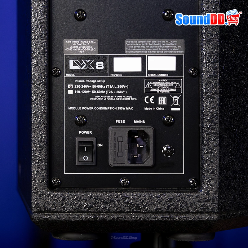 LVX 8 มาพร้อมวูฟเฟอร์ขนาด 8 นิ้ว และไดรเวอร์คอมเพรสชั่นขนาด 1 นิ้ว บนฮอร์นแบบหมุนได้ 90° x 70° คุณสมบัตินี้มีประโยชน์อย่างยิ่งแม้ในกรณีที่ใช้เป็นมอนิเตอร์บนเวที ด้วยมุมด้านหลัง 40°
