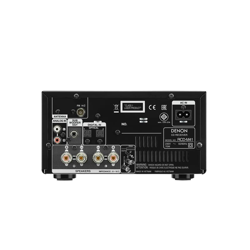 Denon’s engineers have completely rethought the design, from the styling and facilities right through to the audio circuitry, to offer even more performance and value. The new amplifier circuit delivers 2x30W, so the RCD-M41 has more than enough power to drive either the matching SC-M41 speakers or other popular choices and there’s also a dedicated headphone amplifier section for personal listening.
