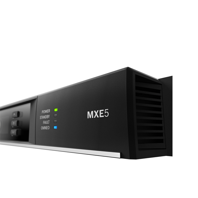 MXE5-64 เป็นมิกเซอร์แบบเมทริกซ์ ที่ออกแบบมาเพื่อมอบเสียงคุณภาพสูง สำหรับงานติดตั้งถาวร รองรับความถี่การทำงานที่ 96 kHz หรือ 48 kHz มันทำหน้าที่เป็นศูนย์ควบคุมและศูนย์สื่อสารสำหรับอุปกรณ์ระบบอื่น ๆ และอุปกรณ์ต่อพ่วงที่ใช้ IP โดยมีการควบคุมและดูแลระบบอย่างครบวงจร พร้อมด้วยอินพุตไมโครโฟน/ไลน์ แบบอนาล็อก 12 ช่อง, เอาต์พุตไลน์ 8 ช่อง และ Dante ขนาด 64×64 ชาแนล