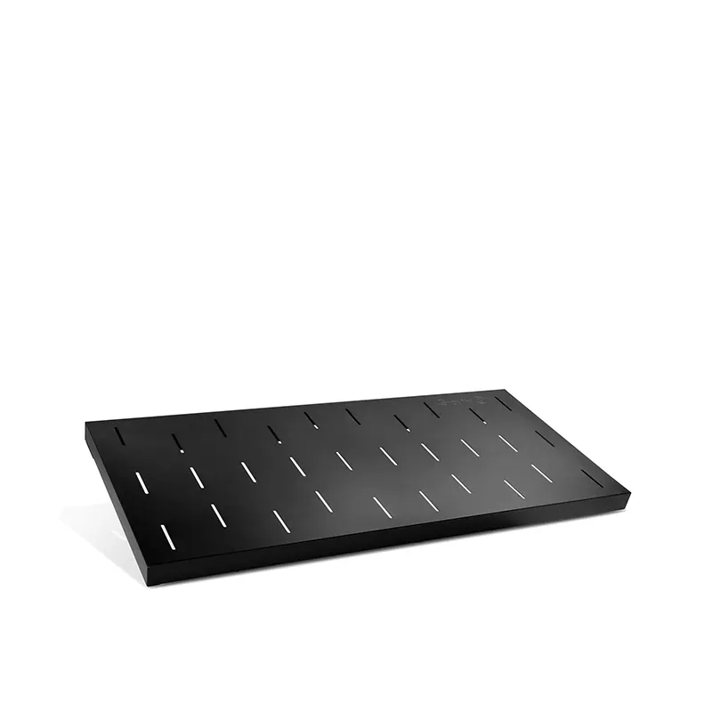 การทำงานกับแล็ปท็อปถือเป็นส่วนหนึ่งของชีวิตประจำวันของดีเจหรือช่างเทคนิคในสตูดิโอ นั่นจึงเป็นเหตุผลที่ แผ่นรอง KS RD1 ถูกออกแบบมาสำหรับใช้กับขาตั้งคีย์บอร์ด เพื่อช่วยยึดอุปกรณ์อันมีค่าของคุณให้แน่นหนา ป้องกันการหล่นเสียหาย และเช่นเดียวกับขาตั้งและขาไมค์อื่น ๆ ของ Gravity® การออกแบบที่แข็งแรงทนทานเป็นพิเศษนี้ จะทำให้คุณประทับใจอย่างแน่นอน ด้วยขนาดกว้าง 100 ซม. และลึก 48 ซม. แผ่นรองที่เคลือบผงสีนี้มีพื้นที่มากพอสำหรับการจัดวางอุปกรณ์ได้แทบทุกรูปแบบ และแม้จะมีน้ำหนักเพียงเล็กน้อยกว่า 6 กก. แต่ก็มีความมั่นคงสูง และสามารถรองรับน้ำหนักได้ถึง 60 กก. อย่างไรก็ตาม ควรทราบด้วยว่า ขาตั้ง X ที่ใช้ควรมีความสามารถรองรับน้ำหนักได้ในระดับเดียวกัน เช่นรุ่น Gravity® KS X2 ซึ่งเหมาะสำหรับการใช้งานนี้โดยเฉพาะ ช่องระบายอากาศบนผิวของแผ่นรอง ก็เป็นอีกหนึ่งรายละเอียดที่ผ่านการออกแบบมาอย่างใส่ใจ ช่วยระบายความร้อนจากแล็ปท็อป หรืออุปกรณ์อื่น ๆ ที่เกิดความร้อนระหว่างใช้งาน