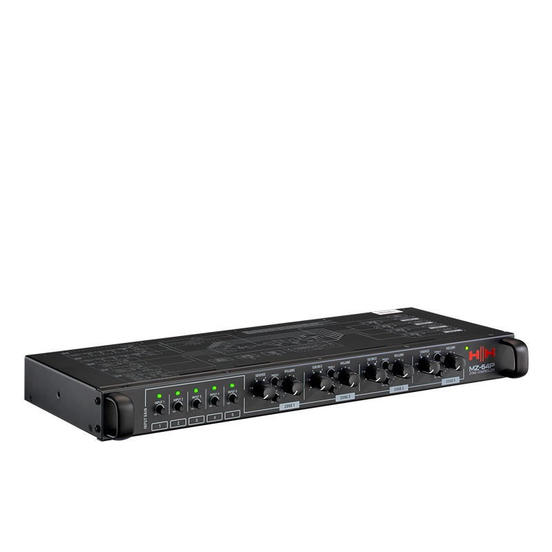 เครื่องขยายเสียง HH Audio MZ-64P ปรีแอมป์ 5 ชาแนล 4 โซน ควบคุมโซนที่ออกแบบมา เพื่อการกระจายเสียงอย่างยืดหยุ่น สามารถกำหนดทิศทางเสียง ได้ตามต้องการ จากแบรนด์ HH Audio