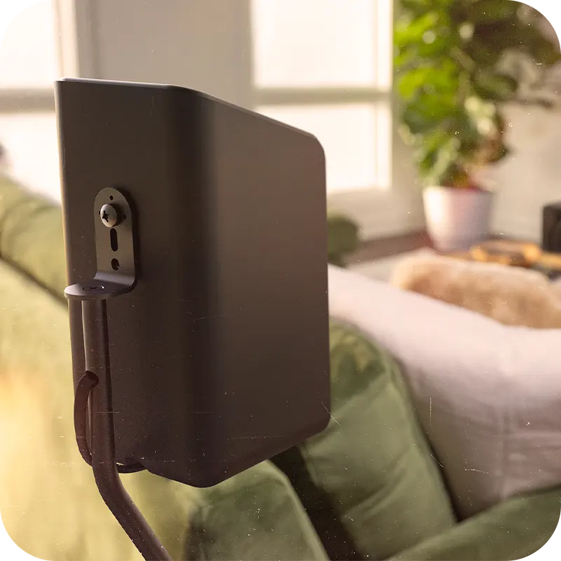 เราทำให้ทุกอย่างเรียบง่ายที่สุด ไม่ต้องใช้อะแดปเตอร์ ไม่ต้องใช้ดองเกิล และไม่ต้องเดินสายลำโพงให้ยุ่งยาก ลำโพง Flexus Surround แต่ละตัวใช้การจ่ายไฟแยกอิสระ เพียงเสียบปลั๊กไฟเข้ากับผนังด้วยสายไฟเส้นเดียว ไม่มีสายเชื่อมต่อระหว่างลำโพง และไม่มีสายระโยงระยางบนพื้น ช่วยให้พื้นที่ดูเรียบร้อย และติดตั้งได้อย่างสะดวกยิ่งขึ้น