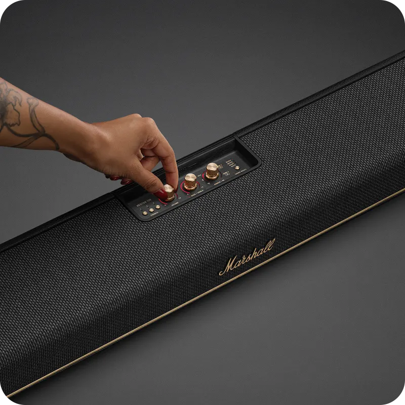 ลำโพงซาวด์บาร์ MARSHALL HESTON 120 ระบบเสียง immersive audio ระบบเสียง 3 มิติจาก Dolby Atmos รองรับ Wi-Fi และ Bluetooth 5.3 พร้อมเทคโนโลยีใหม่ล่าสุด Auracast™ จากแบรนด์ MARSHALL
