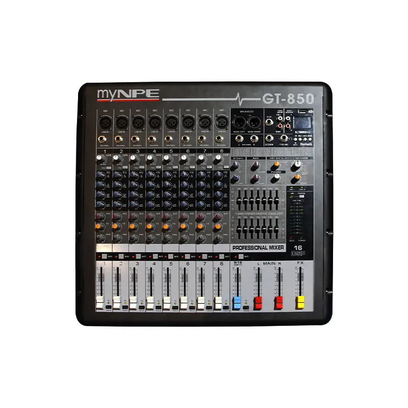 เพาเวอร์มิกเซอร์ myNPE GT-850 8 ชาแนล 2×500 วัตต์ เอฟเฟคในตัว กำลังขับ 2 x 500 วัตต์ กราฟฟิค EQ Main LR สำหรับปรับแต่งเสียงลำโพง จากแบรนด์ myNPE