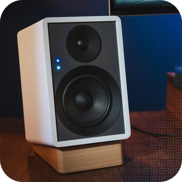 ลำโพงแบบมอนิเตอร์ที่มีภาคขยายในตัว ไม่จำเป็นต้องใช้เครื่องขยายเสียงหรืออุปกรณ์ประมวลผลภายนอก ก็สามารถให้เสียงที่ยอดเยี่ยมได้ ลำโพง Onkyo Creator Series ของคุณใช้พื้นที่น้อยกว่าลำโพงแบบพาสซีฟ จึงช่วยให้คุณมีพื้นที่บนโต๊ะทำงาน คอนโซล หรือชั้นวางหนังสือมากขึ้น โดยไม่ต้องลดทอนคุณภาพเสียง
