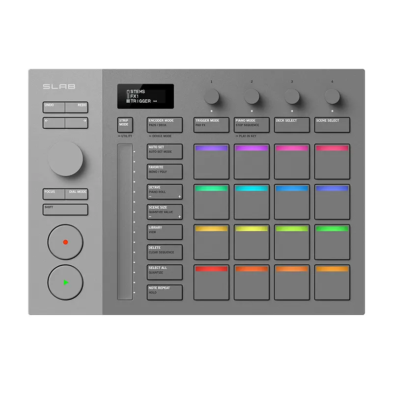 SLAB คือ MIDI Pad Controller รุ่นแรกที่นำความสามารถด้านการซัมปลิง การจัดลำดับจังหวะ (Sequencing) และการแสดงสดของ Serato Studio มาไว้ในมือคุณโดยตรง อุปกรณ์นี้ช่วยดึงสัญชาตญาณ ความรู้สึก และความรวดเร็วของการสร้างบีตกลับคืนสู่แก่นแท้ของการทำดนตรี