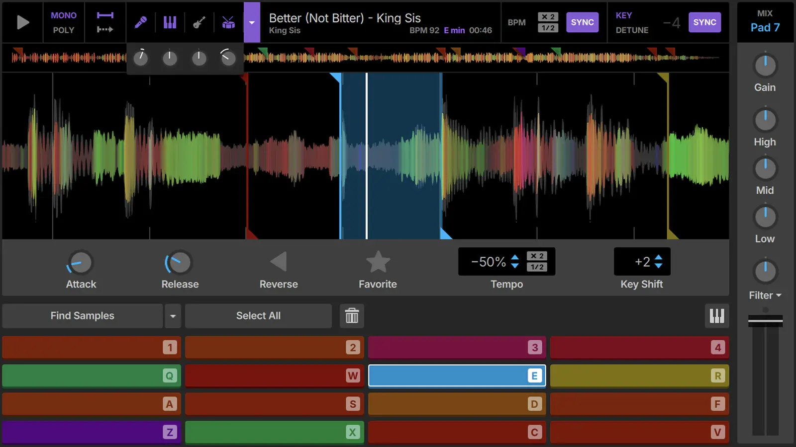 แยกและใช้งานส่วนที่ดีที่สุดจากซาวด์ตัวอย่างได้สูงสุด 16 ส่วนจากแต่ละตัวอย่างเสียง พร้อมรองรับการทำงานกับ Track Stems อย่างเต็มรูปแบบ ซาวด์ตัวอย่างแต่ละส่วนสามารถปรับคีย์ (Key Shift), ยืดหรือหดเวลา (Time-Stretch) และควบคุมการเล่นได้อย่างอิสระ