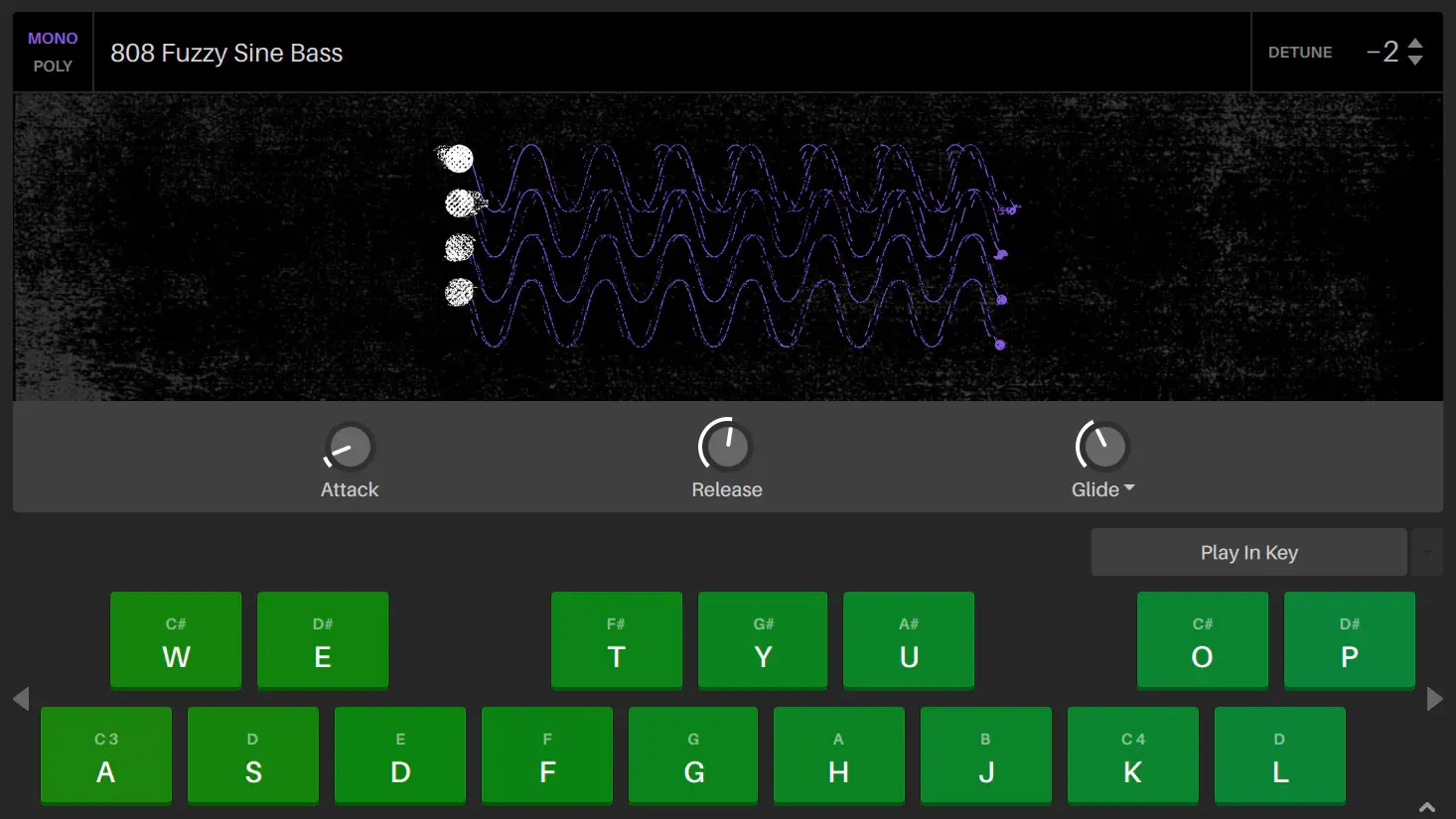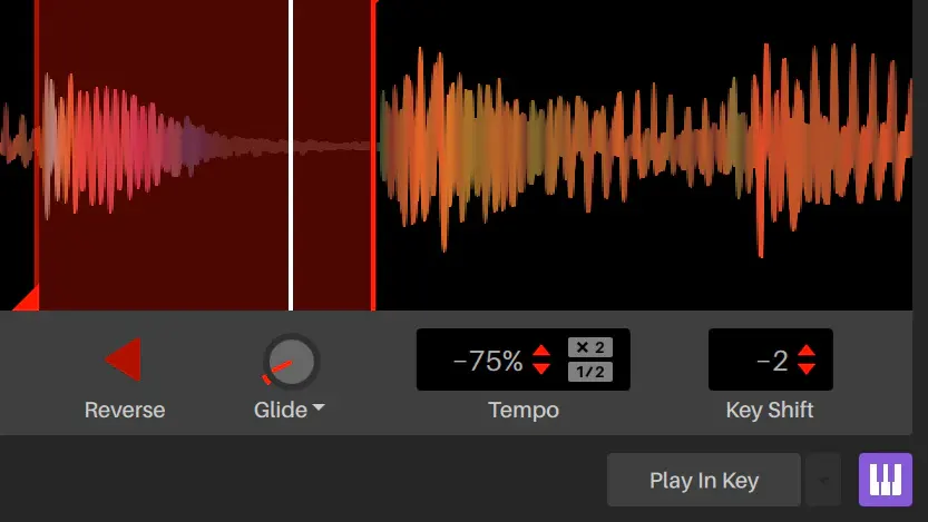 เล่นซาวด์ตัวอย่างใดก็ได้เสมือนเครื่องดนตรี ปรับแต่งค่า Attack, Release, Glide และ Sustain ได้อย่างละเอียด รองรับทั้งการเล่นแบบโมโนและโพลีโฟนี ใช้ฟังก์ชัน Auto Chords เพื่อสร้างคอร์ดโปรเกรสชัน และ Play in Key เพื่อให้ทุกโน้ตเข้ากับคีย์ของโปรเจกต์อย่างสมบูรณ์แบบ