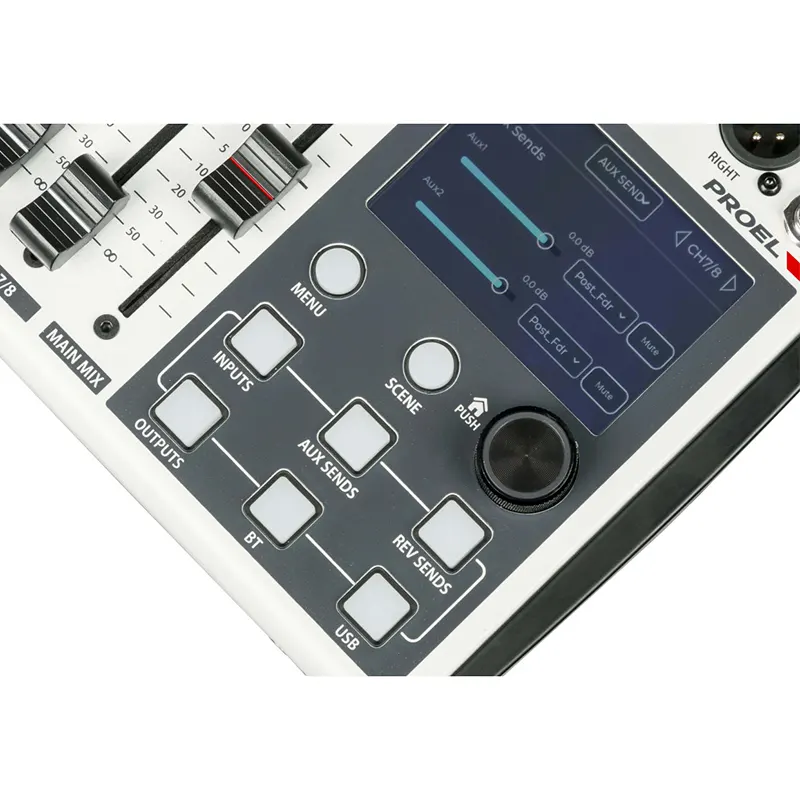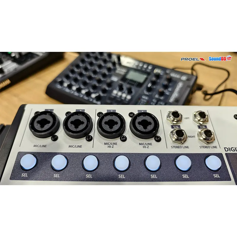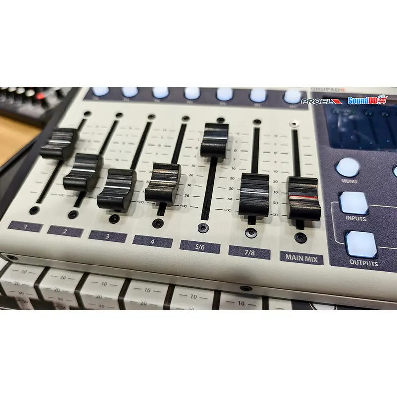 มิกเซอร์ PROEL DIGIPAD8 ดิจิตอล 8 ชาแนล ควบคุมซาวด์ได้อย่างเต็มที่ด้วย เฟดเดอร์มอเตอร์ 7 ตัว พร้อมรองรับ ช่องอินพุตแบบ Combo MIC/LINE และอินพุตสเตอริโอ จากแบรนด์ PROEL