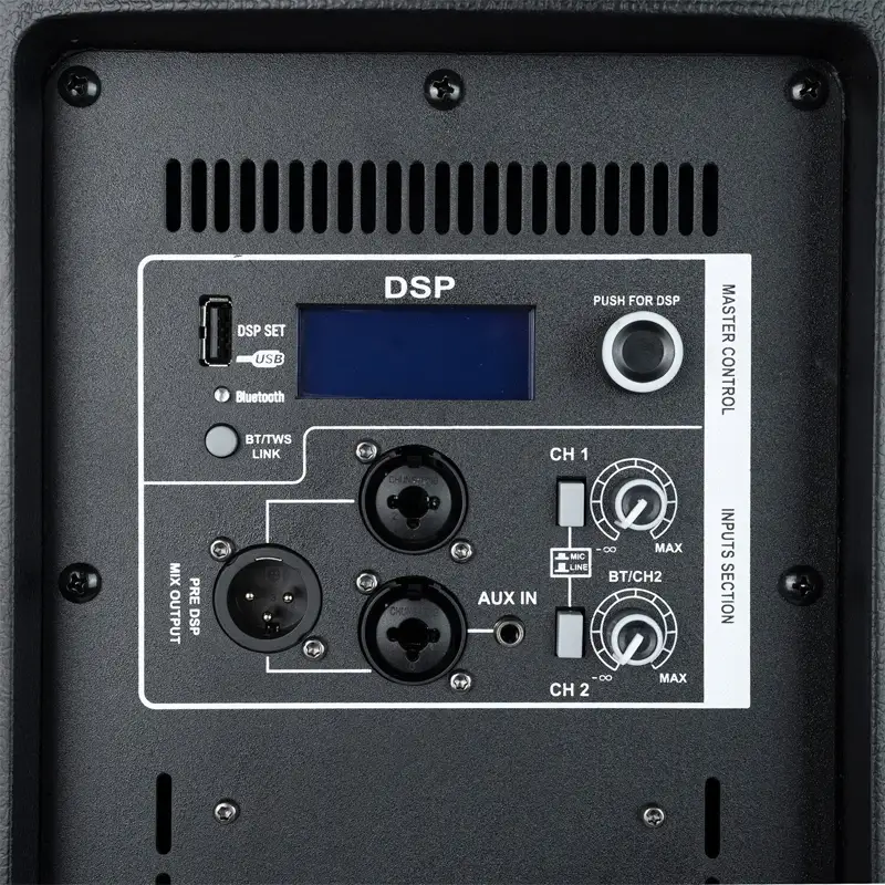 K15 มาพร้อมช่องอินพุต 2 ช่อง แบบคอมโบ สำหรับเชื่อมต่อสัญญาณ Mic/Line พร้อมช่อง Aux in 3.5 สำหรับต่อเข้ากับเครื่องเล่นเพลง มี DSP ในตัวและหน้าจอ LCD ที่สามารถปรับแสงได้พร้อม EQ นอกจากนี้ยังรองรับบลูทูธระยะการใช้งาน 25 – 30 เมตร และ TWS แต่จะใช้ได้เฉพาะการเปิดเพลงผ่านบลูทูธ ไม่รวมการใช้งานไมโครโฟน เหมาะสำหรับงานติดตั้ง, งานแสดงสด, อีเวนต์ และงานพูด