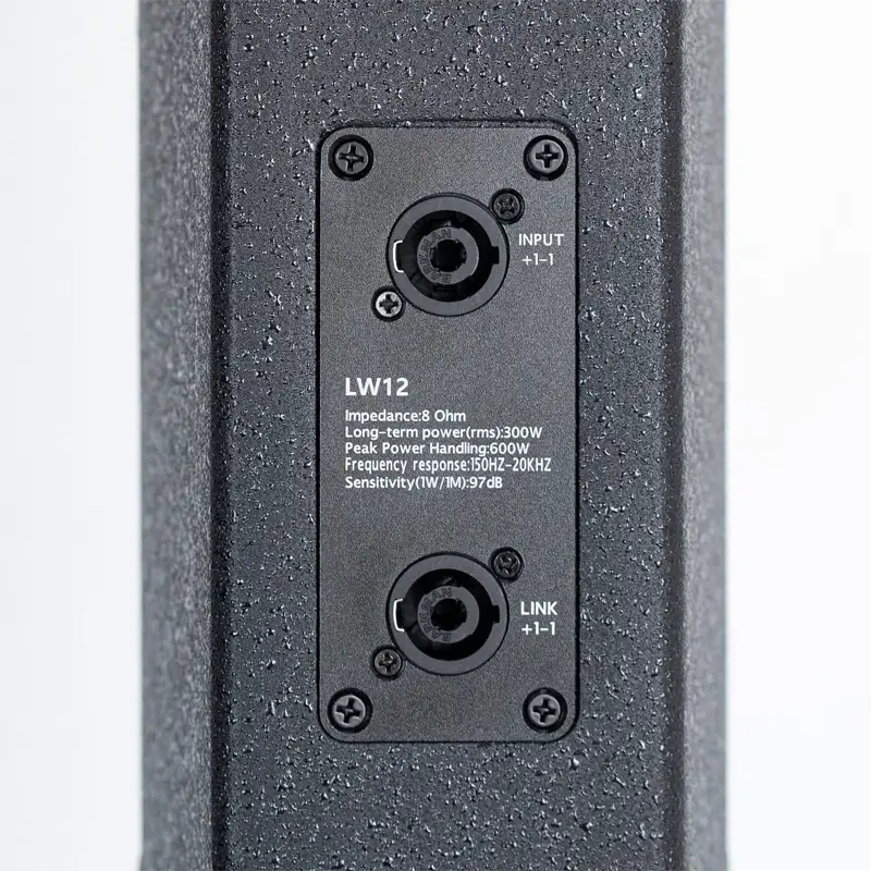 LW12 ลำโพง Active คอลัมน์ แบบ 3 ทาง ที่ประกอบไปด้วยดอกเสียงกลางขนาด 4 นิ้ว 2 ดอก, ดอกเสียงแหลมขนาด 1 นิ้ว 1 ดอก พร้อมซับวูฟเฟอร์ ขนาด 12 นิ้ว มอบการตอบสนองทุกรายละเอียดเสียง อีกทั้งยังมีแอมป์ Class-D ในตัวที่ให้กำลังขับสูงสุด 800+800 วัตต์ และเมื่อใช้งานร่วมกับทรานสดิวเซอร์มันจะให้ความดังสูงสุดถึง 126 dB