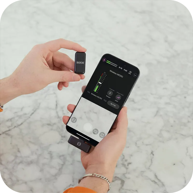 สามารถควบคุมไมโครโฟน RØDE ที่รองรับได้โดยตรงจากในแอป และยังมีโหมดกล้องคู่สุดพิเศษ ช่วยให้คุณสามารถบันทึกวิดีโอแบบ แบ่งหน้าจอ (Split Screen) หรือ ซ้อนภาพ (Picture-in-Picture) จากกล้องหน้า และกล้องเซลฟี่ได้พร้อมกัน