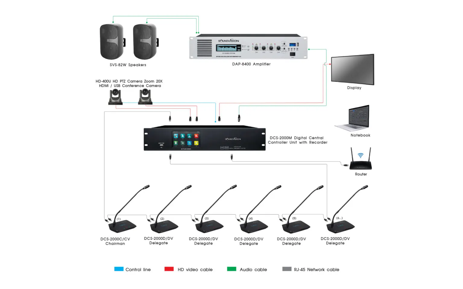 ชุดไมค์ประชุมใช้สาย SOUNDVISION DCS-2000D สำหรับผู้ร่วมประชุม ระบบดิจิตอล รองรับการทำงาน และตอบสนองในช่วงความถี่แบรนด์วิธ ที่ 20Hz ถึง 20kHz จากแบรนด์ SOUNDVISION
