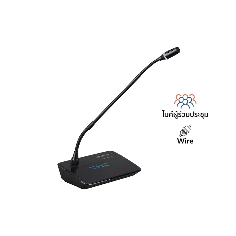 - การแสดงสถานะบนไมโครโฟน ไมโครโฟนจะมีหลอดไฟแบบวงแหวนสำหรับแสดงสถานการณ์พูด สีแดงแสดงสถานะ “กำลังสนทนาอยู่” และ สีเขียวแสดงสถานะ “เมื่อผู้ร่วมประชุมต้องการขอพูด”