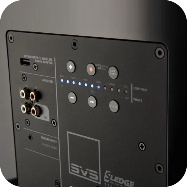 - ไดไร์เวอร์ SVS ขนาด 13 นิ้ว แบบยิงเสียงทางด้านหน้า พร้อมช่วงการขยับสูง (high-excursion)