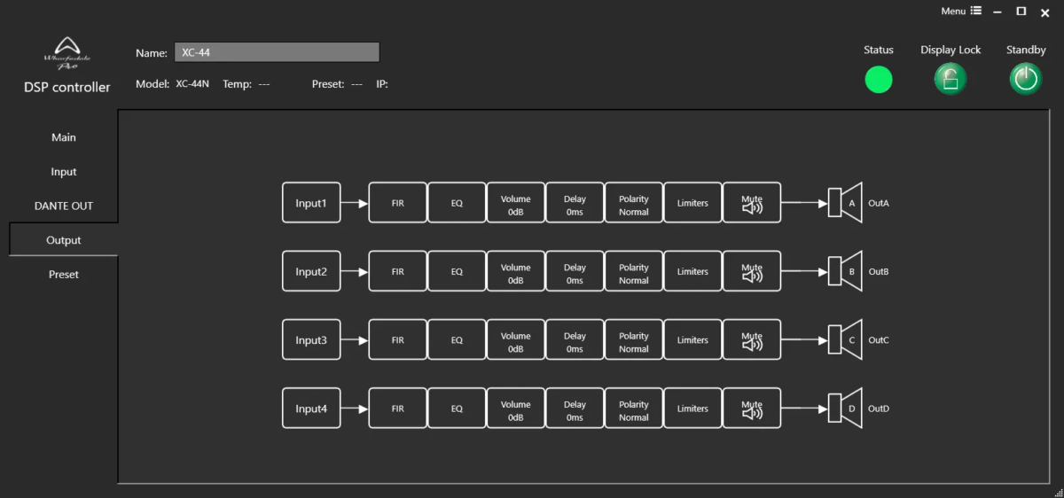 การควบคุม DSP เป็นสิ่งจำเป็นเพื่อรีดพลังสูงสุดจากระบบ PA และที่สำคัญคือเพื่อป้องกันความเสียหายที่อาจเกิดขึ้น XC Series มอบ DSP control แบบ 4 อินพุต – 4 เอาต์พุต พร้อมฟิลเตอร์ FIR เพื่อประสิทธิภาพและการป้องกันระดับสูงสุด