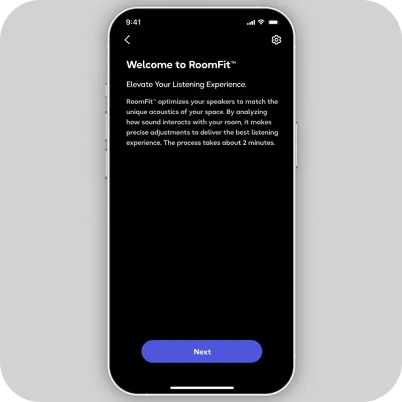 แตะ RoomFit™ ในแอป จากนั้นอยู่ในความเงียบระหว่างเสียงสแกน และปล่อยให้ AI ปรับเสียงเบสให้สมบูรณ์แบบกับห้องของคุณ