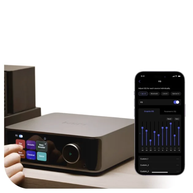 สตรีมเพลงคุณภาพคมชัดสูงถึง 24-bit/192 kHz จากแพลตฟอร์มต่างๆ เช่น Spotify, Amazon Music, TIDAL, Qobuz หรือคลังเพลงส่วนตัว ให้ผู้ใช้งานเพลิดเพลินไปกับการเล่นแบบไม่หยุดพักและคุณภาพเสียงที่เหนือชั้น อีกทั้งยังสามารถปรับแต่งเสียงได้ด้วยระบบปรับแก้ขั้นสูง และการตั้งค่า EQ อิสระที่ปรับให้เหมาะกับพื้นที่ได้