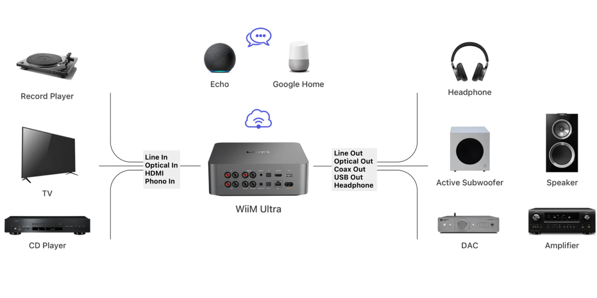 สร้างระบบเสียงที่เป็นหนึ่งเดียวทั่วบ้านได้อย่างง่ายดายโดยใช้ WiiM Ultra ร่วมกับอุปกรณ์ Amazon Echo, Google Home และ WiiM ที่มีอยู่ และจัดการการสตรีมเพลงได้อย่างง่ายดายด้วยแอพ WiiM Home ที่สามารถควบคุมระดับเสียง, ซิงโครไนซ์ลำโพง, บันทึกเพลงโปรด, ตั้งนาฬิกาปลุก และปรับแต่งการตั้งค่า ทั้งหมดจากที่เดียว