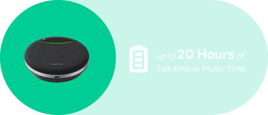 รองรับการใช้งานแบบไร้สายได้นานสูงสุดถึง 20 ชั่วโมง ทั้งการสนทนา และฟังเพลง ให้คุณทำงาน ประชุม หรือผ่อนคลายได้ต่อเนื่องยาวนาน ดีไซน์กะทัดรัด พกพาสะดวก พร้อมใช้งานทุกเมื่อที่คุณต้องการ ไม่ว่าจะเป็นที่โต๊ะทำงานในออฟฟิศ บนม้านั่งในสวน หรือมุมทำงานที่บ้าน