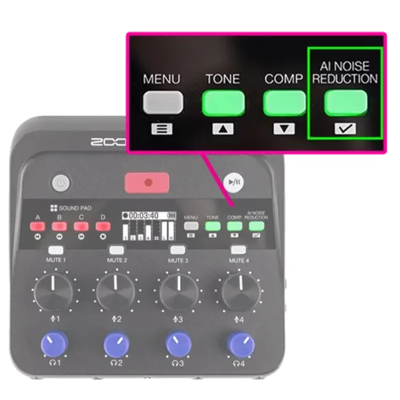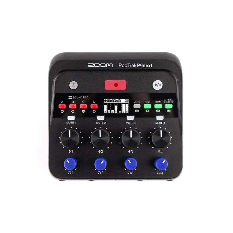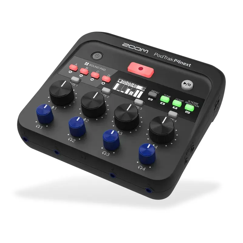 เครื่องบันทึกเสียงแบบพกพา ZOOM PodTrak P4next สำหรับพอดแคสต์ อินพุตไมโครโฟนแบบ XLR จำนวน 4 ช่อง มาพร้อมเทคโนโลยี AI Noise Reduction จากแบรนด์ ZOOM