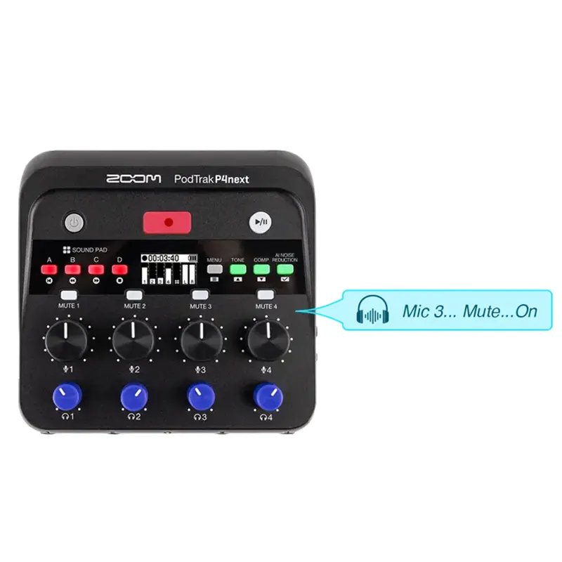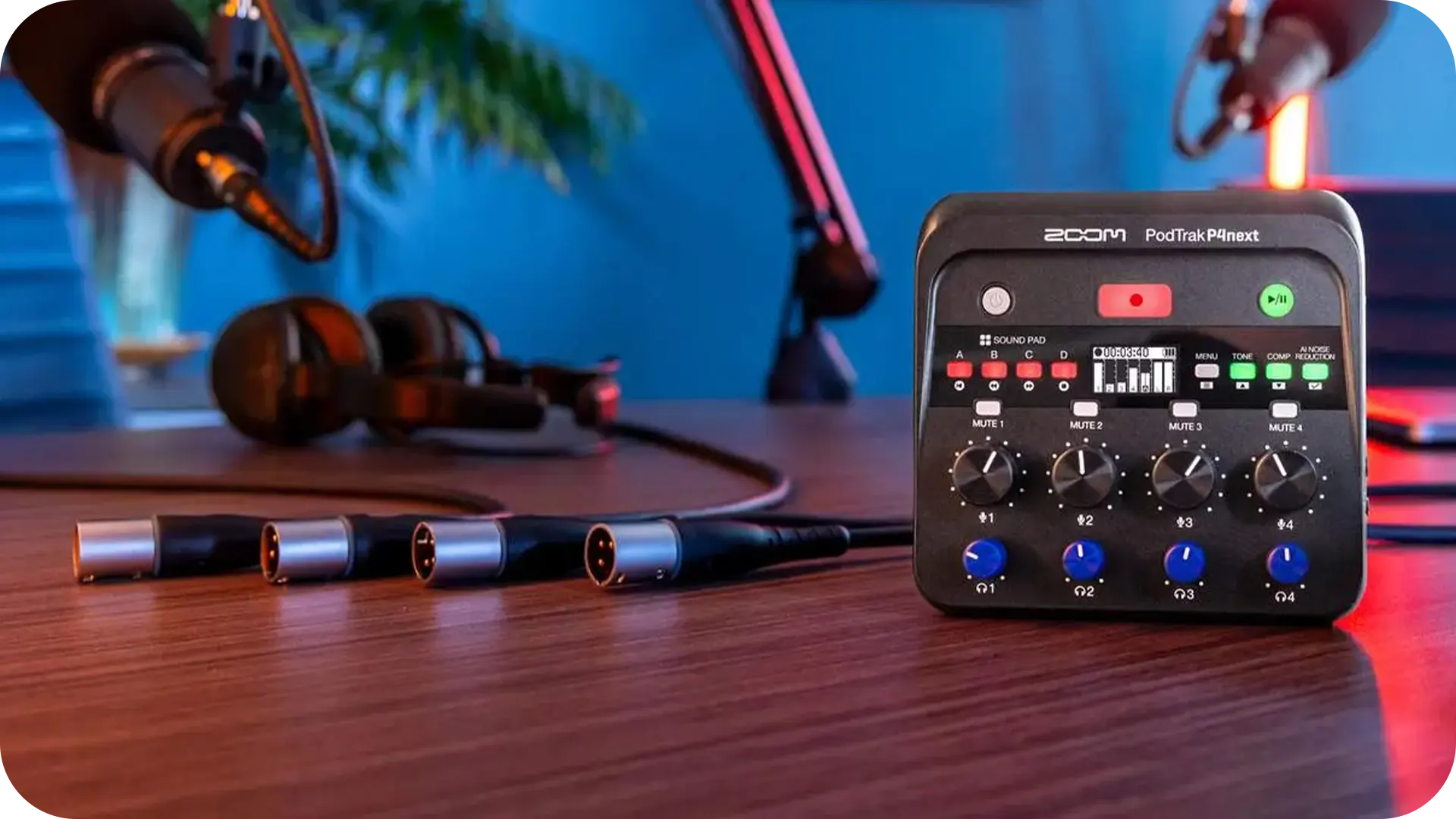 PodTrak P4next ทำให้การสร้างพอดแคสต์คุณภาพระดับบรอดแคสต์เป็นเรื่องง่ายกว่าที่เคย ด้วยอินพุตไมโครโฟนแบบ XLR จำนวน 4 ช่อง รองรับการจัดรายการแบบหลายคนได้อย่างมืออาชีพ