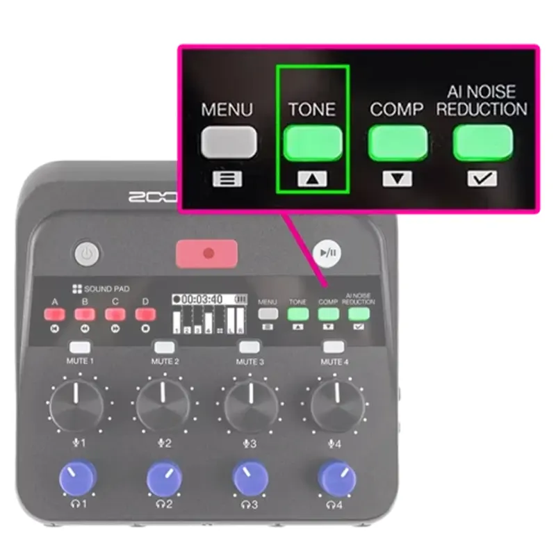 ฟีเจอร์ Tone ช่วยยกระดับคุณภาพเสียงของคุณได้ทันที ด้วยการปรับแต่ง EQ และระบบ De-essing เพื่อลดเสียงซ่าและความแหลมที่บาดหู